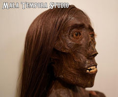 Il volto di un sacerdote azteco del dio Xipe Totec, subito dopo aver compiuto un sacrificio umano in cima alla piramide nel distretto sacro di Tenochtitlán (ora Città del Messico). Le modificazioni del corpo sono evidenti: orecchie auto-mutilate in onore del dio, lobi allargati da piercing d'oro massiccio, denti limati, labret (piercing labiale) di ossidiana. Presenta anche pittura del corpo e capelli sporcati da sangue umano. Questa rappresentazione è basata sul codice Nuttall precolombiano e descrizioni tratte da resoconti di conquistadores spagnoli.